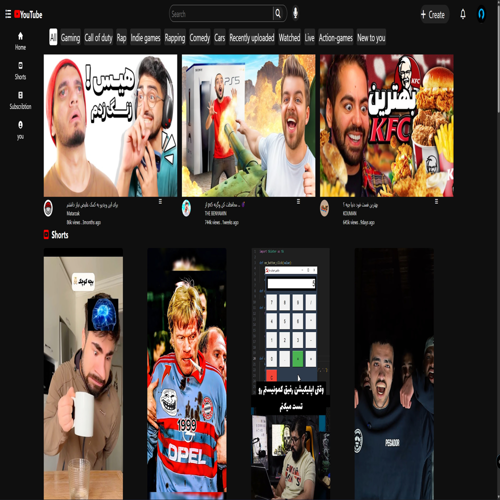 طراحی سایت یوتیوب برای نمونه کار