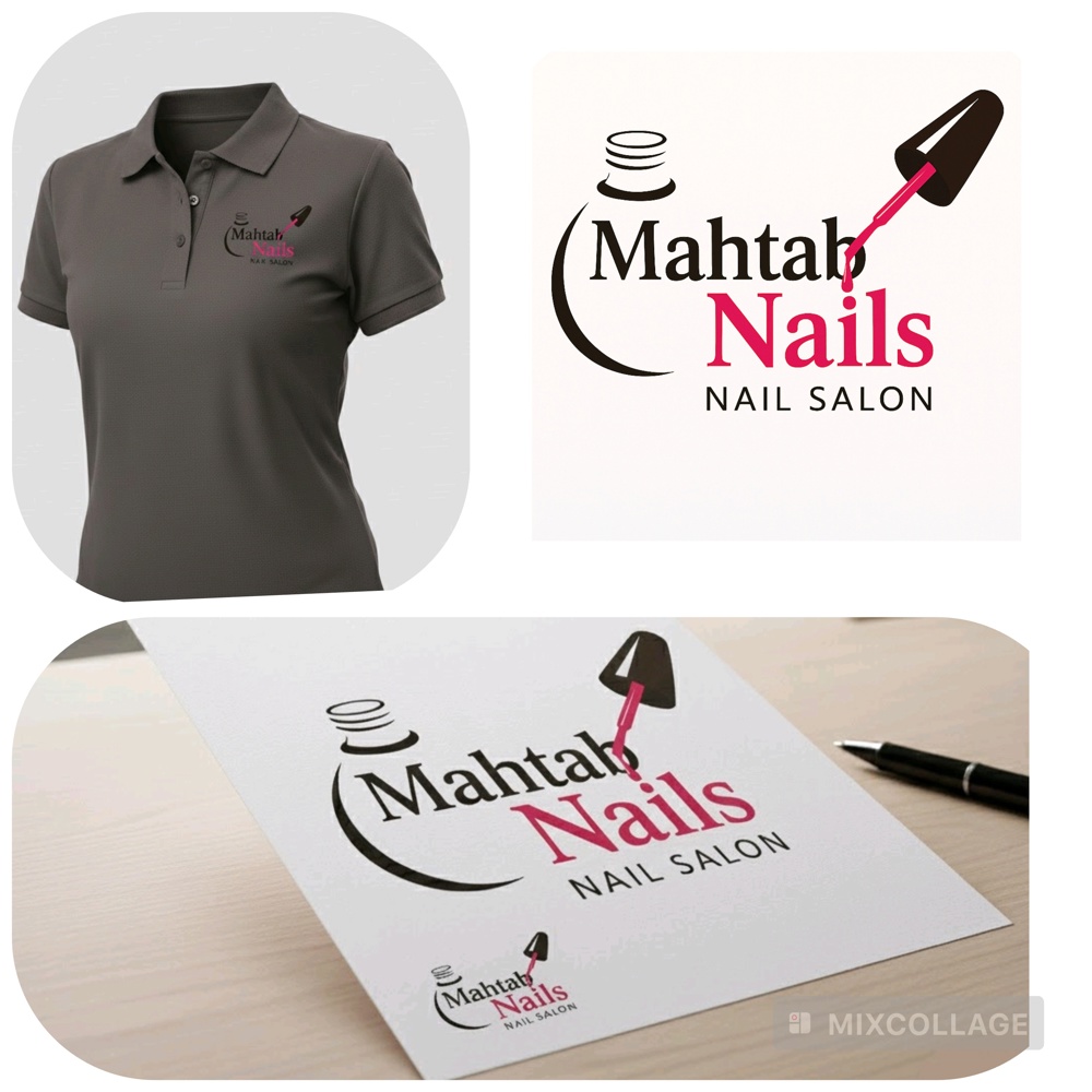طراحی لوگوی مدرن و خلاقانه برای سالن ناخن "Mahtab Nails" با الهام از طراحی لاک ناخن و ترکیب رنگهای شاد و جذاب، به منظور جلب توجه و انتقال حس حرفهای بودن در صنعت زیبایی و ناخن.