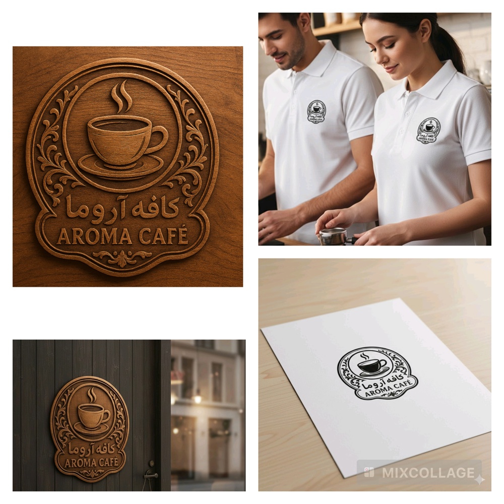 طراحی لوگو حرفهای برای برندها، فروشگاهها و کافیشاپها با سبکهای متنوع (مینیمال، کلاسیک، سهبعدی و …). در این سرویس ایدهپردازی خلاقانه، اجرای تایپوگرافی فارسی و انگلیسی، و ارائه طرح نهایی با کیفیت بالا انجام میشود. نمونه کار حاضر، لوگوی کافیشاپ Aroma Café است که با سبک منبت روی چوب طراحی شده و حس گرم و صمیمی یک کافه را بهخوبی منتقل میکند.