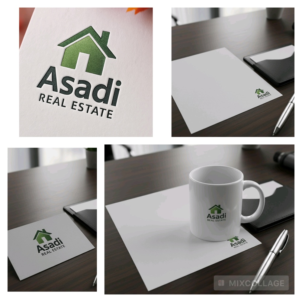 طراحی لوگوی اختصاصی برای برند "Asadi Real Estate" با سبک مینیمال، مدرن و حرفهای. استفاده از نماد خانه برای القای حس اعتماد و تخصص در حوزه مشاور املاک.