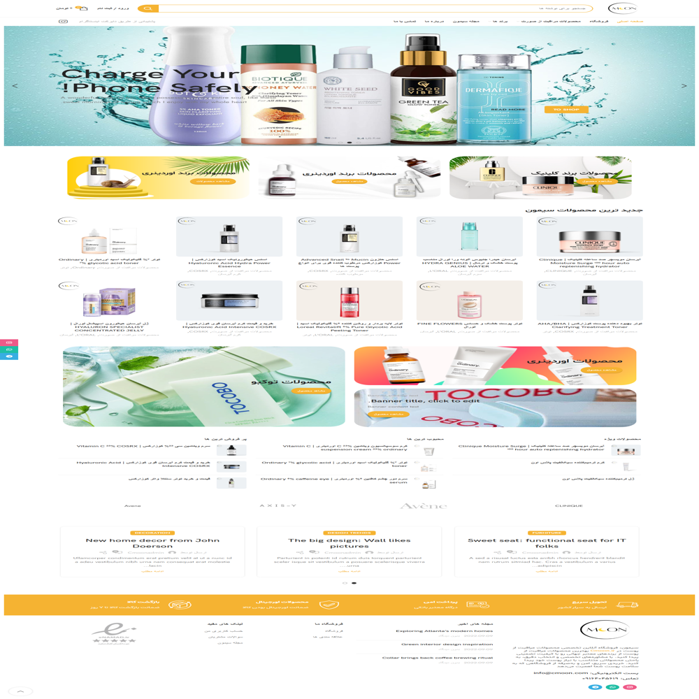 طراحی سایت فروشگاهی سیمون (محصولات مراقبت از پوست) طراحی اختصاصی با قالب وودمارت و المنتور اتصال به شبکه های اجتماعی