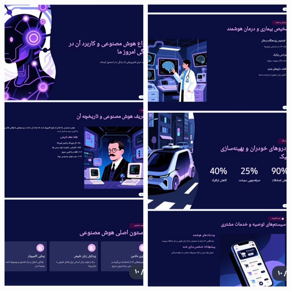 طراحی پاورپوینت و PDF حرفهای با ترکیب متن، تصویر و گرافیک برای ارائهای تاثیرگذار و جذاب.
