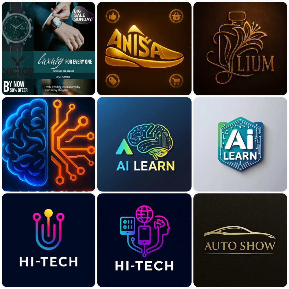 نمونه لوگوهای طراحی شده با نرم افزار و هوش مصنوعی لوگو طبق درخواست کارفرما و با طرح پیشنهادی یا با ایده پردازی شخصی پس از بررسی زمینه و نوع فعالیت برند طراحی میشود.