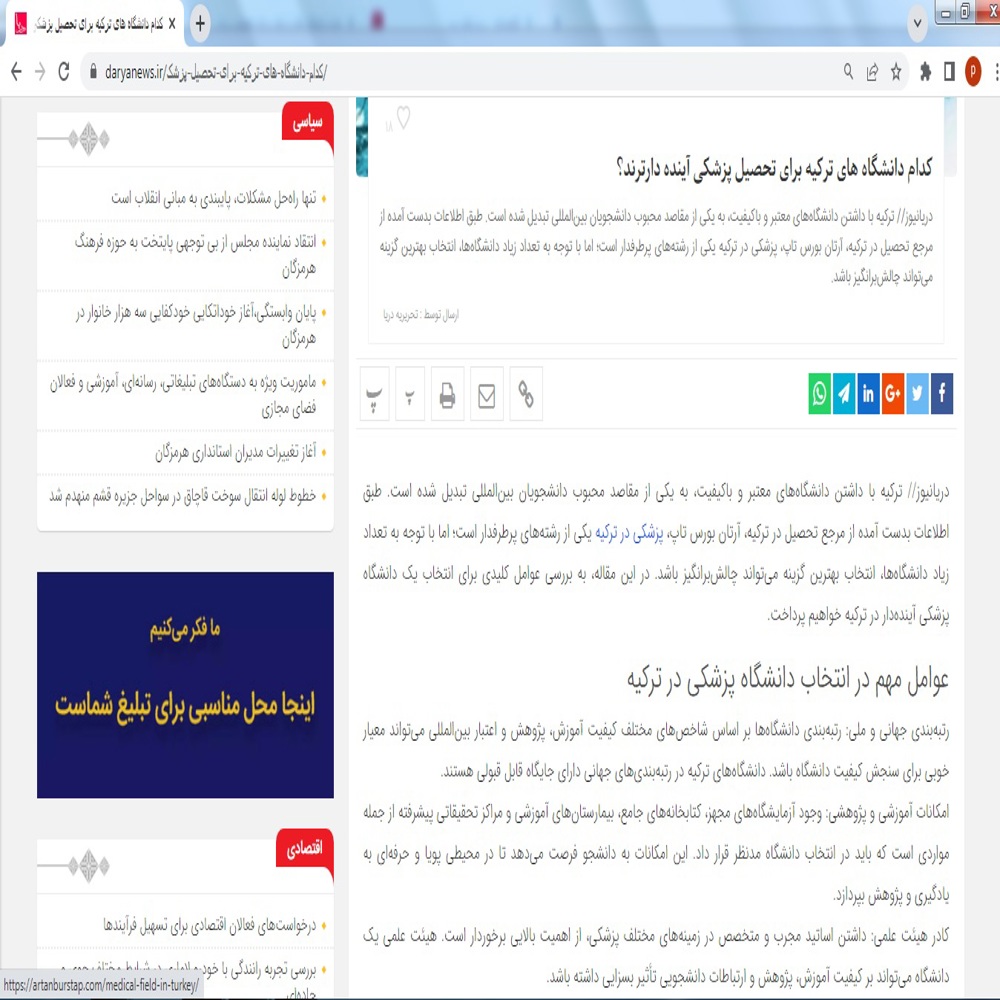 نگارش مقاله برای انتشار در وبلاگ سایت آرتان بورس تاپ این نمونه کار، بخش کوچکی از تولید و ویرایش بیش از 200 متن، مقاله و خبر در زمینه مهاجرت تحصیلی و کاری است. همه آنها موجب رشد سئو سایت آرتان بورس تاپ شدند.