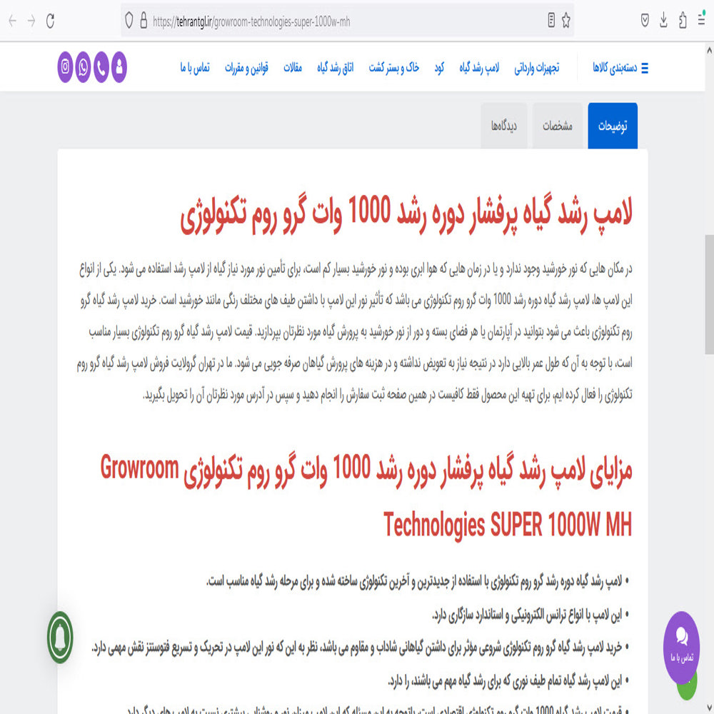 توضیح محصول برای سایت و فروشگاه آنلاین تهران گرولایت این نمونه کار، تنها بخشی از نگارش بیش از 150 توضیح محصول برای فروش آنلاین تجهیزات و فناوریهای گلخانهای است.